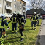 Das geschlossene Garagentor musste von einem Trupp unter Atemschutz gewaltsam mittels Rettungssäge geöffnet werden. Die anschließende Brandbekämpfung wurde von 2 Trupps unter Atemschutz durchgeführt.