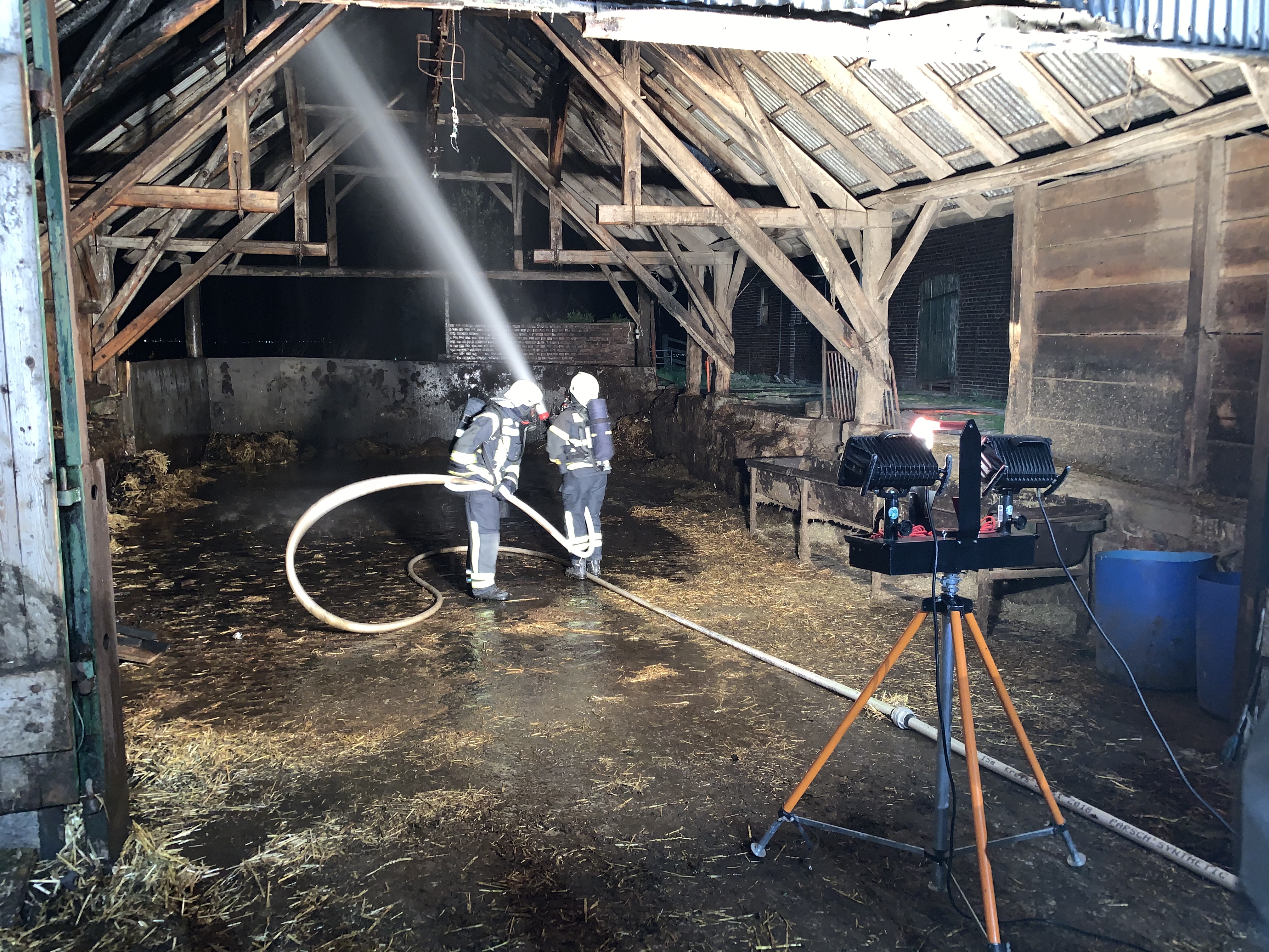 Die Brände wurden in Summe mit 5 C-Rohren von 5 Trupps unter Atemschutz gelöscht. Mittels Wärmebildkameras wurden alle Bereiche kontrolliert. Die Einsatzstelle wurde großflächig mittels Drehleiter und mehrerer Stative ausgeleuchtet. Eine Wasserversorgung über mehrere hundert Meter wurde von 2 Unterflurhydrantem aufgebaut.